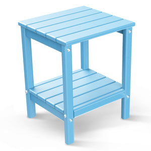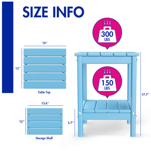 FODINGHILL 2-Tier Outdoor Side Table, HDPE All Weather Adirondack Patio Table with Storage Shelf, Outside End Table for Porch Backyard Indoor, Arctic