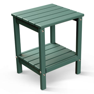 FODINGHILL 2-Tier Outdoor Side Table, HDPE All Weather Adirondack Patio Table with Storage Shelf, Outside End Table for Porch Backyard Indoor, Dark Green