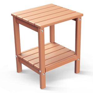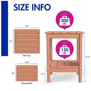 FODINGHILL 2-Tier Outdoor Side Table, HDPE All Weather Adirondack Patio Table with Storage Shelf, Outside End Table for Porch Backyard Indoor, Teak