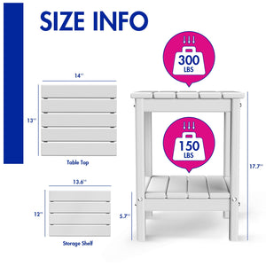 FODINGHILL 2-Tier Outdoor Side Table, HDPE All Weather Adirondack Patio Table with Storage Shelf, Outside End Table for Porch Backyard Indoor, White