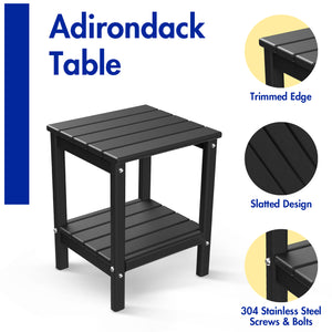FODINGHILL 2-Tier Outdoor Side Table set of 2, HDPE All Weather Adirondack Patio Table with Storage Shelf, Outside End Table for Porch Backyard Indoor, Black