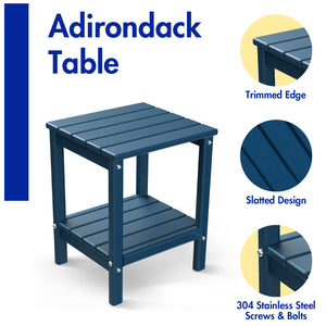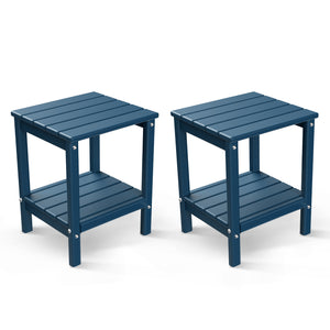 FODINGHILL 2-Tier Outdoor Side Table set of 2, HDPE All Weather Adirondack Patio Table with Storage Shelf, Outside End Table for Porch Backyard Indoor, Blue