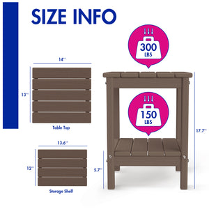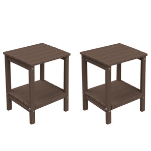 FODINGHILL 2-Tier Outdoor Side Table set of 2, HDPE All Weather Adirondack Patio Table with Storage Shelf, Outside End Table for Porch Backyard Indoor, Brown Wood Grain