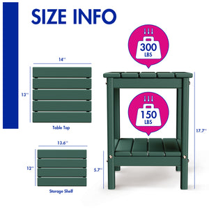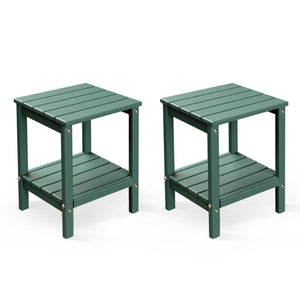 FODINGHILL 2-Tier Outdoor Side Table set of 2, HDPE All Weather Adirondack Patio Table with Storage Shelf, Outside End Table for Porch Backyard Indoor, Dark Green