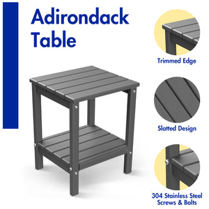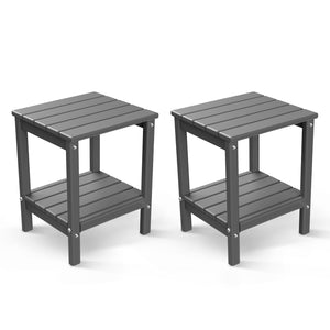 FODINGHILL 2-Tier Outdoor Side Table set of 2, HDPE All Weather Adirondack Patio Table with Storage Shelf, Outside End Table for Porch Backyard Indoor, Grey