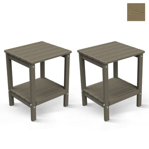 FODINGHILL 2-Tier Outdoor Side Table set of 2, HDPE All Weather Adirondack Patio Table with Storage Shelf, Outside End Table for Porch Backyard Indoor, Wood Grain