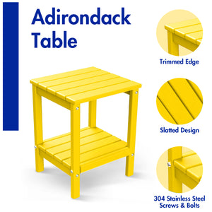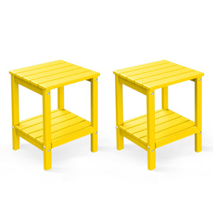 FODINGHILL 2-Tier Outdoor Side Table set of 2, HDPE All Weather Adirondack Patio Table with Storage Shelf, Outside End Table for Porch Backyard Indoor, Yellow