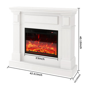 FODINGHILL 43" Electric Fireplace with Mantel,Freestanding Fireplace Heater with TV Stand,Adjustable 3D Flame,Remote Control,1500W,White