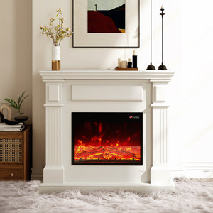 FODINGHILL 45" Electric Fireplace with Mantel,Freestanding Fireplace Heater with TV Stand,Adjustable 3D Flame,Remote Control,1500W,White