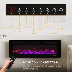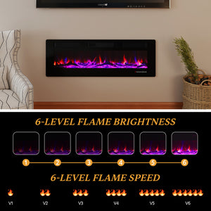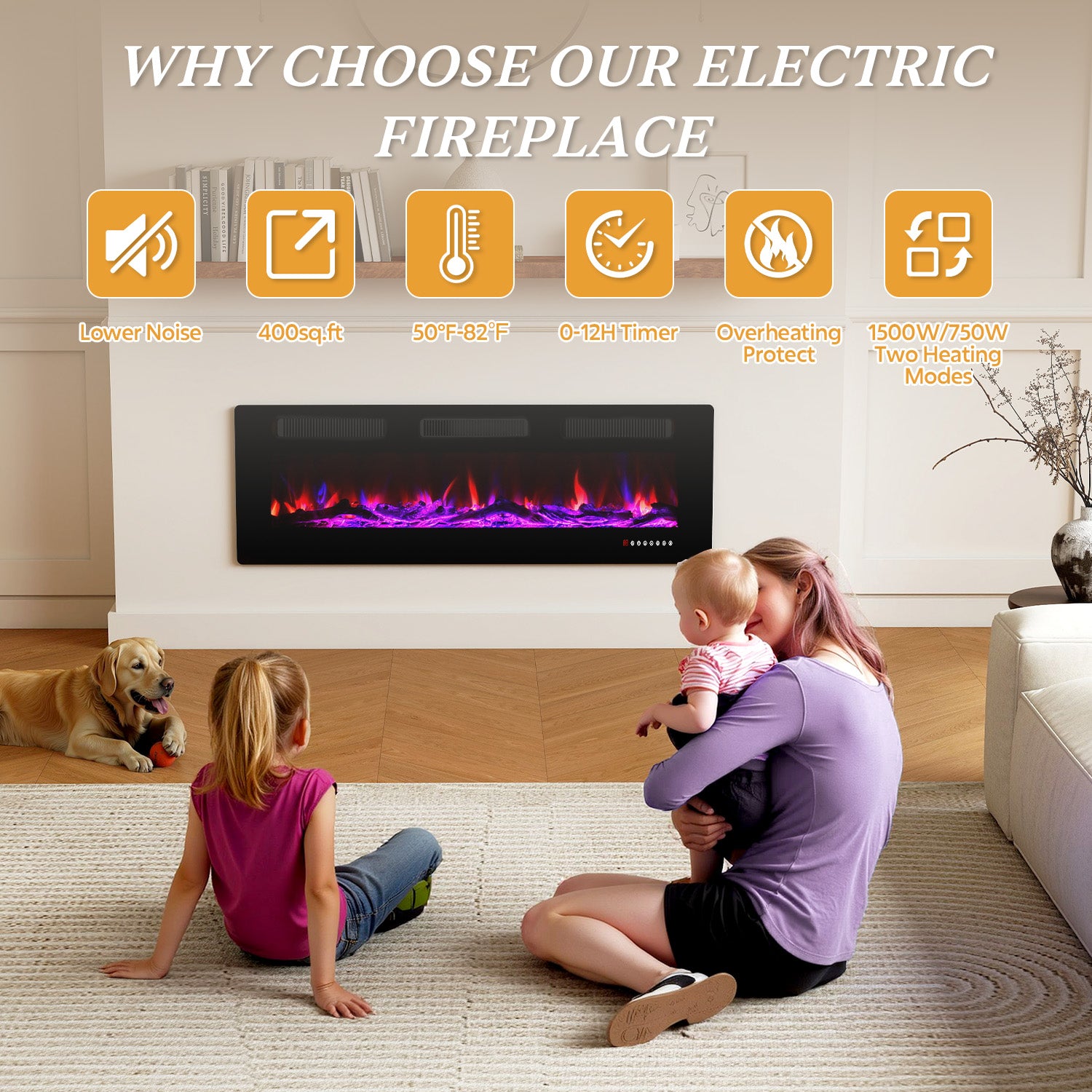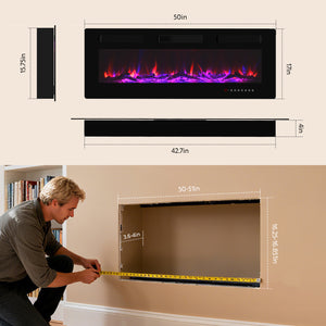 FODINGHILL 50” Electric Fireplace Ultra Thin Fireplace,Recessed Wall Mounted Fireplace Heater with Multicolor Flame & Remote Control,750/1500W