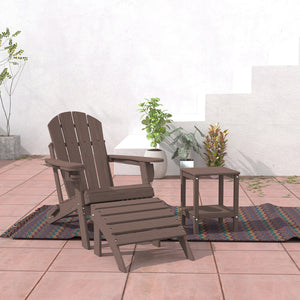 FODINGHILL Adirondack Outdoor Ottoman, HDPE Patio Foot Rest, All Weather Folding Foot Stool for Adirondack Chair, for Patio Backyard Pool Porch Lawn, Brown Wood Grain