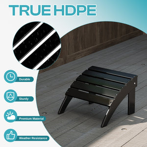 FODINGHILL Adirondack Outdoor Ottoman set of 2, HDPE Patio Foot Rest set of 2, All Weather Folding Foot Stool for Adirondack Chair, for Patio Backyard Pool Porch Lawn, Black