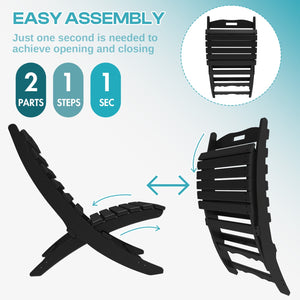 FODINGHILL Folding Xavier Adirondack Chairs Set of 2, HDPE All-Weather Folding Adirondack Outdoor Chair for Patio Porch Garden, Black
