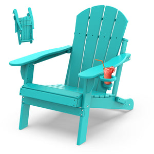 Outdoor Folding Adirondack Chair, HDPE All Weather Patio Chair with Cup Holder for Deck Backyard Garden, Aqua