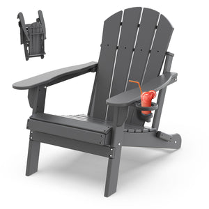 PIPOPA Outdoor Folding Adirondack Chair, HDPE All Weather Patio Chair with Cup Holder for Deck Backyard Garden, Grey