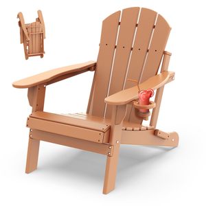 Outdoor Folding Adirondack Chair, HDPE All Weather Patio Chair with Cup Holder for Deck Backyard Garden, Teak