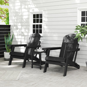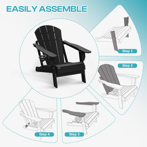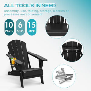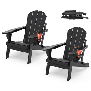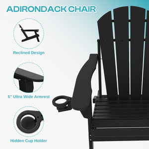 PIPOPA Outdoor Folding Adirondack Chair Set of 2, HDPE All Weather Patio Chair with Cup Holder for Deck Backyard Garden, Black