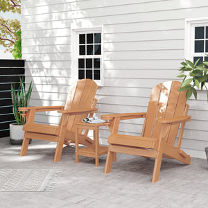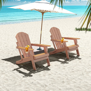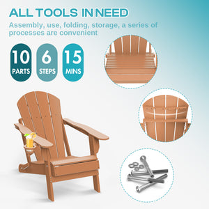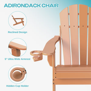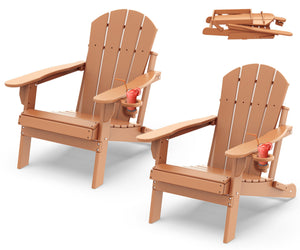 Outdoor Folding Adirondack Chair set of 2, HDPE All Weather Patio Chair with Cup Holder for Deck Backyard Garden, Teak