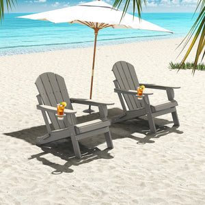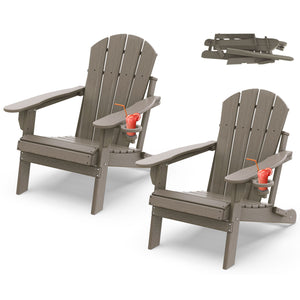 Outdoor Folding Adirondack Chair set of 2, HDPE All Weather Patio Chair with Cup Holder for Deck Backyard Garden, Wood