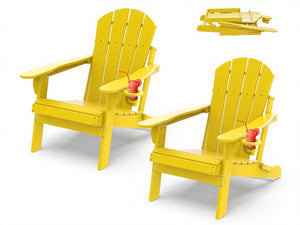 Outdoor Folding Adirondack Chair set of 2, HDPE All Weather Patio Chair with Cup Holder for Deck Backyard Garden, Yellow