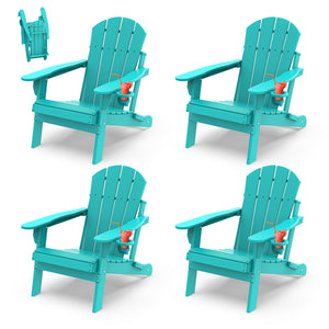 Outdoor Folding Adirondack Chair set of 4, HDPE All Weather Patio Chair with Cup Holder for Deck Backyard Garden, Aqua