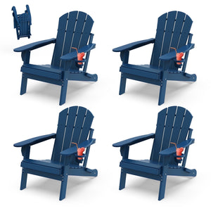 PIPOPA Outdoor Folding Adirondack Chair set of 4, HDPE All Weather Patio Chair with Cup Holder for Deck Backyard Garden, Blue