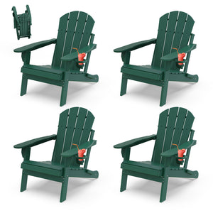 Outdoor Folding Adirondack Chair set of 4, HDPE All Weather Patio Chair with Cup Holder for Deck Backyard Garden, Forest