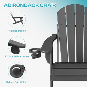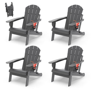 PIPOPA Outdoor Folding Adirondack Chair set of 4, HDPE All Weather Patio Chair with Cup Holder for Deck Backyard Garden, Grey