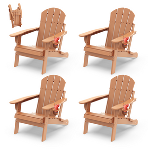 Outdoor Folding Adirondack Chair set of 4, HDPE All Weather Patio Chair with Cup Holder for Deck Backyard Garden, Teak