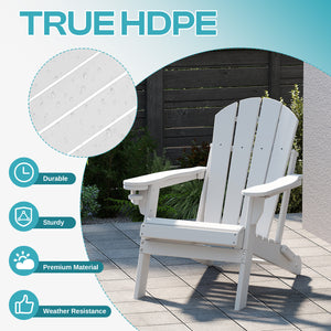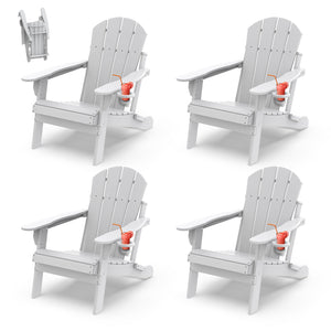 PIPOPA Outdoor Folding Adirondack Chair set of 4, HDPE All Weather Patio Chair with Cup Holder for Deck Backyard Garden, White