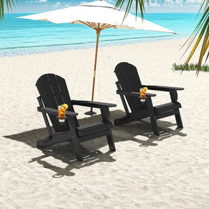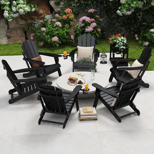 Outdoor Folding Adirondack Chair set of 6, HDPE All Weather Patio Chair with Cup Holder for Deck Backyard Garden, Black