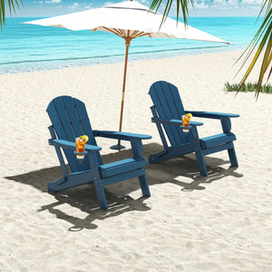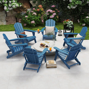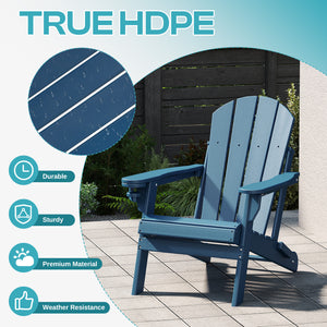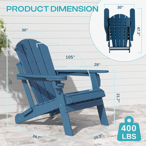 Outdoor Folding Adirondack Chair set of 6, HDPE All Weather Patio Chair with Cup Holder for Deck Backyard Garden, Blue
