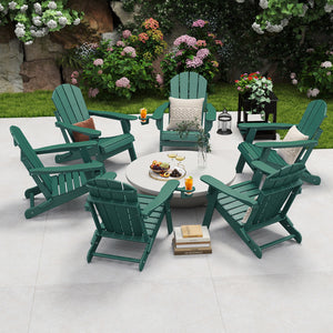 Outdoor Folding Adirondack Chair set of 6, HDPE All Weather Patio Chair with Cup Holder for Deck Backyard Garden, Forest
