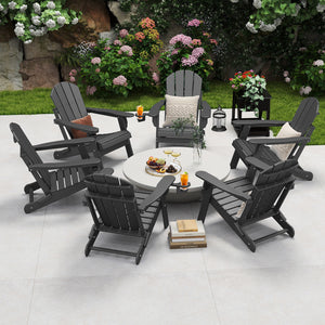 Outdoor Folding Adirondack Chair set of 6, HDPE All Weather Patio Chair with Cup Holder for Deck Backyard Garden, Gray