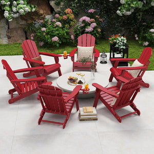 Outdoor Folding Adirondack Chair set of 6, HDPE All Weather Patio Chair with Cup Holder for Deck Backyard Garden, Red