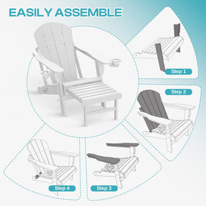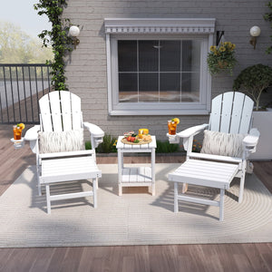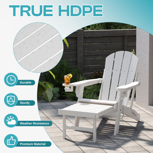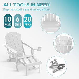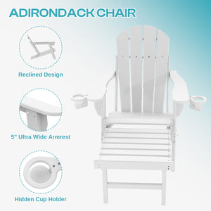 PIPOPA Outdoor Folding Adirondack Chair with ottoman set of 2, HDPE All Weather Patio Chair with Cup Holder for Deck Backyard Garden, White