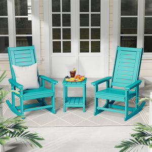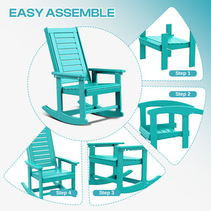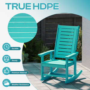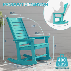 Outdoor Rocking Chair, HDPE All Weather Adirondack Oversized Rockers, Porch Rocking Chairs for Patio Outside Backyard Balcony Garden, Aqua
