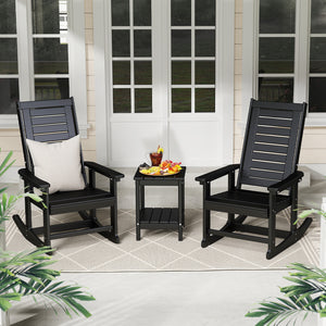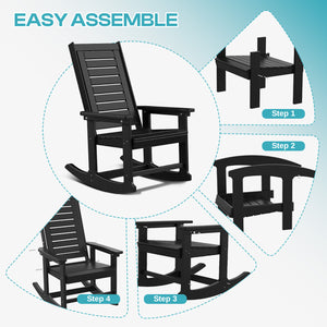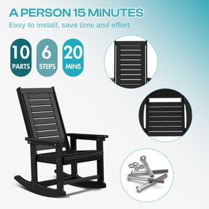 Outdoor Rocking Chair, HDPE All Weather Adirondack Oversized Rockers, Porch Rocking Chairs for Patio Outside Backyard Balcony Garden, Black