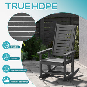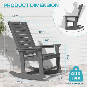 Outdoor Rocking Chair, HDPE All Weather Adirondack Oversized Rockers, Porch Rocking Chairs for Patio Outside Backyard Balcony Garden, Gray
