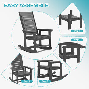 - 🔥【Premium TRUE HDPE Material】Made from upgraded PIPOPA HDPE (High-Density Polyethylene), this rocking chair offers superior quality and safety compared to typical PE or PS materials. Unlike traditional wood chairs, it’s waterproof, weather-resistant, fade-resistant, and resistant to chipping, peeling, cracking, and rotting, making it an ideal choice for outdoor use.