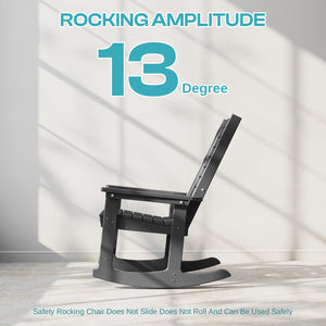 - 🔥【Ergonomic & Comfortable】UPGRADED rocking chair is perfectly designed for indoors or out. Slatted high back & seating design sheds rainwater and dries quickly. 120°elevation allows you to have a wonderful rocking.;
