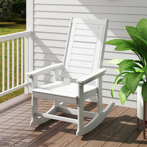 Outdoor Rocking Chair,HDPE Oversized Rocking Chair Outdoor,High Back Rocking Patio Chairs for Porch Garden Balcony,White