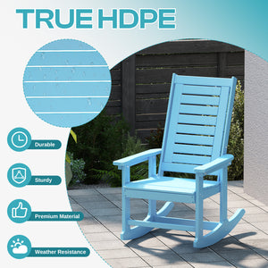 Outdoor Rocking Chair,HDPE Oversized Rocking Outdoor Chair,High Back Rocking Patio Chairs for Porch Garden Balcony,Arctic