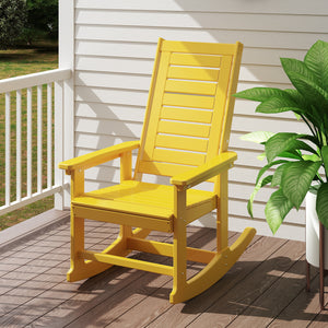 Outdoor Rocking Chair,HDPE Oversized Rocking Outdoor Chair,High Back Rocking Patio Chairs for Porch Garden Balcony,Yellow