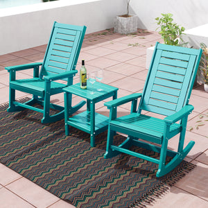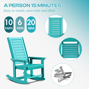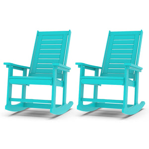 Outdoor Rocking Chair Set of 2, HDPE All Weather Adirondack Oversized Rockers, Porch Rocking Chairs for Patio Outside Backyard Balcony Garden, Aqua