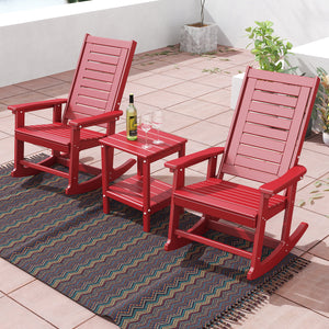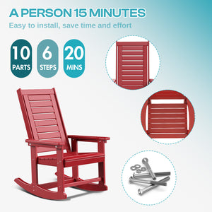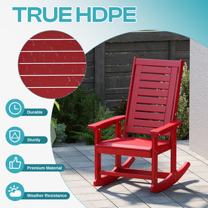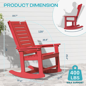 Outdoor Rocking Chair Set of 2, HDPE All Weather Adirondack Oversized Rockers, Porch Rocking Chairs for Patio Outside Backyard Balcony Garden, Red
