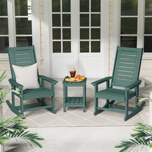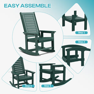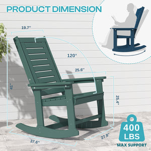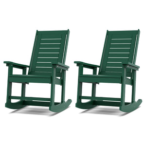 Outdoor Rocking Chair Set of 2,HDPE Oversized Rocking Chair Outdoor,High Back Patio Rocking Chairs for Porch Garden Balcony,Forest