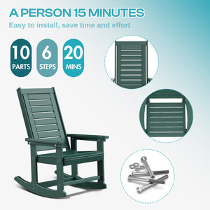 - 🔥【Ergonomic & Comfortable】UPGRADED rocking chair is perfectly designed for indoors or out. Slatted high back & seating design sheds rainwater and dries quickly. 120°elevation allows you to have a wonderful rocking.;