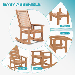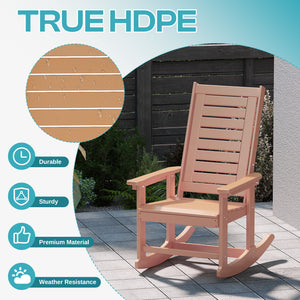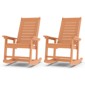 Outdoor Rocking Chair Set of 2,HDPE Oversized Rocking Chair Outdoor,High Back Rocking Patio Chairs for Porch Garden Balcony,Teak