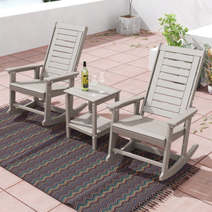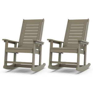 Outdoor Rocking Chair Set of 2, HDPE Oversized Rocking Chair Outdoor, High Back Rocking Patio Chairs for Porch Garden Balcony, Wood